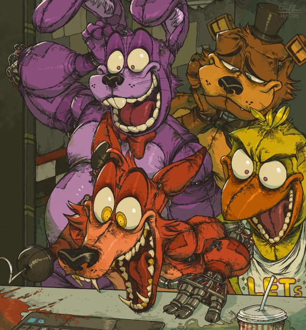 Wep.. Sorry guys, but i couldn't do it on time. You know that my artstyle isn't exactly fast to make so yeah, sorry! Happy 9th Anniversary FNAF! 🎉✨(Have another WIP). twitter.com/furrllow/statu…
