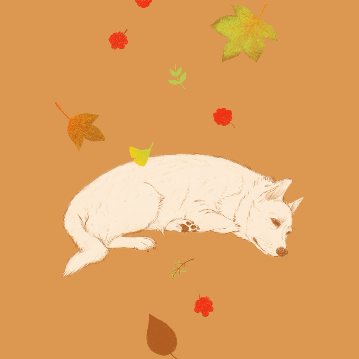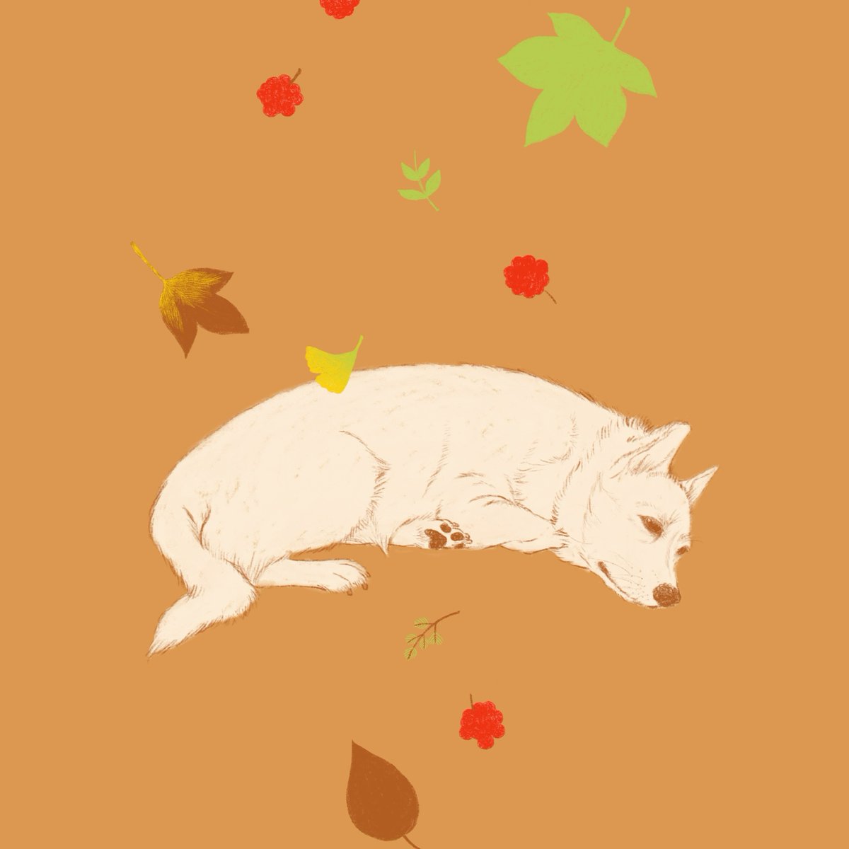 秋のお昼寝のようにしようかな…。 まだ途中です。 #描き途中 #制作過程 #イラスト #デジタルイラスト #保護犬 #柴犬 #コーギー #ilustration #dog