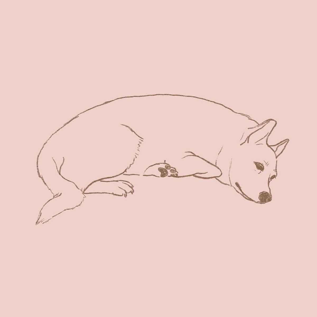 できました🐕 家のわんこの、いつもののんびりしてる時の表情が出たかなと思います。 堅い床で寝ることが多くて肘ダコができてしまったので、犬を飼われている方は気をつけた方がよいです。 #完成 #制作過程 #イラスト #デジタルイラスト #保護犬 #柴犬 #コーギー #紅葉 #ilustration #dog