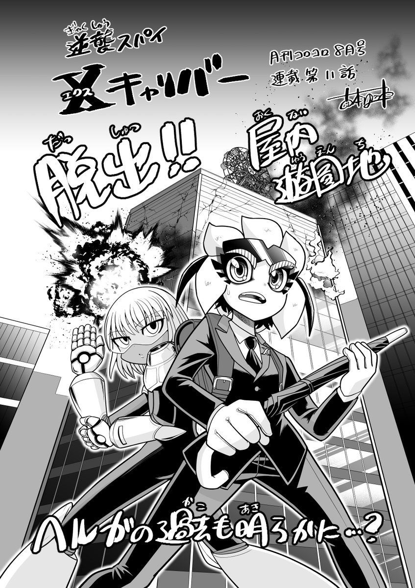 月刊コロコロコミック8月号発売中です。今月のXキャリバーは、ヘルガとのコンビ任務!爆弾テロに見舞われた屋内遊園地からの脱出劇です。トロッコ問題さながらの重大な選択を迫られた、キャリバーが下した決断は…? 応援よろしくお願いします! #逆襲スパイXキャリバー