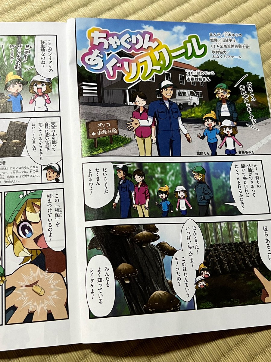ちゃぐりん最新11月号発売中です あぐりスクールはシイタケ収穫体験のお話を描きました。今回のお話を描くために、地元にある実際のシイタケのほだ場を見学させていただきました!みなくちファームさま、ありがとうございました! #ちゃぐりんあぐりスクール ienohikari.net/press/chagurin/