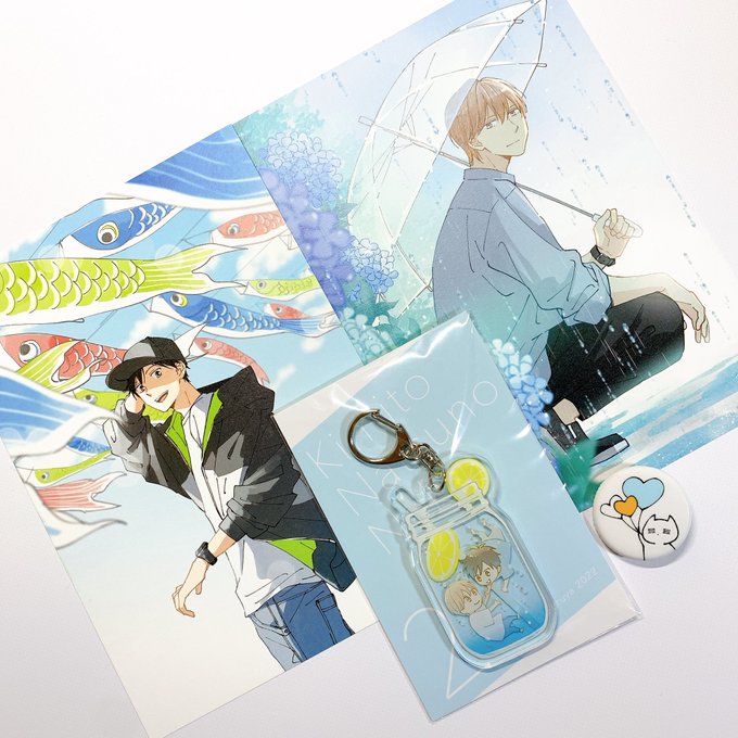 サイン会お土産はアクキーと、2巻が誕生日絡みなのでツイッタのお誕イラストをカードにしてみたよ😊 缶バは当日のアンケートお礼でした🙇♂️