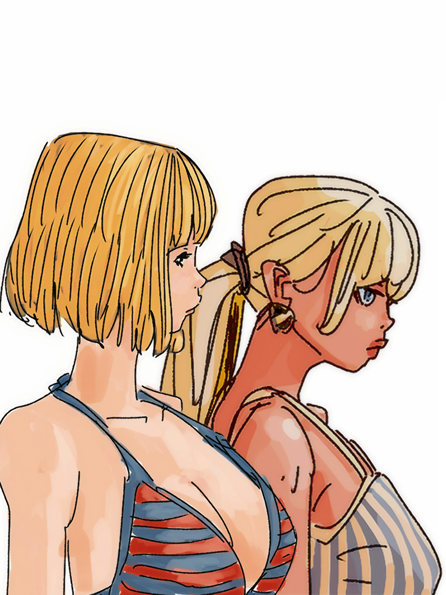 #女の子二人のイラストを貼る見た人もやる そして寝る