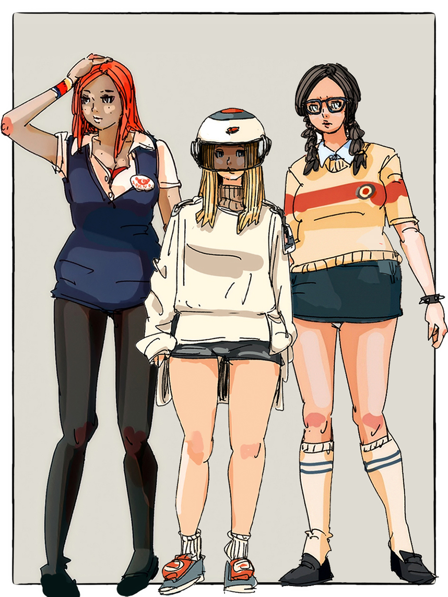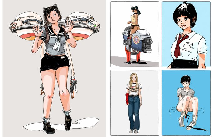 #今月描いた絵を晒そう ・ストレートマシーン ・偵察型女子高生 ・スカイパイロットよしちゃん