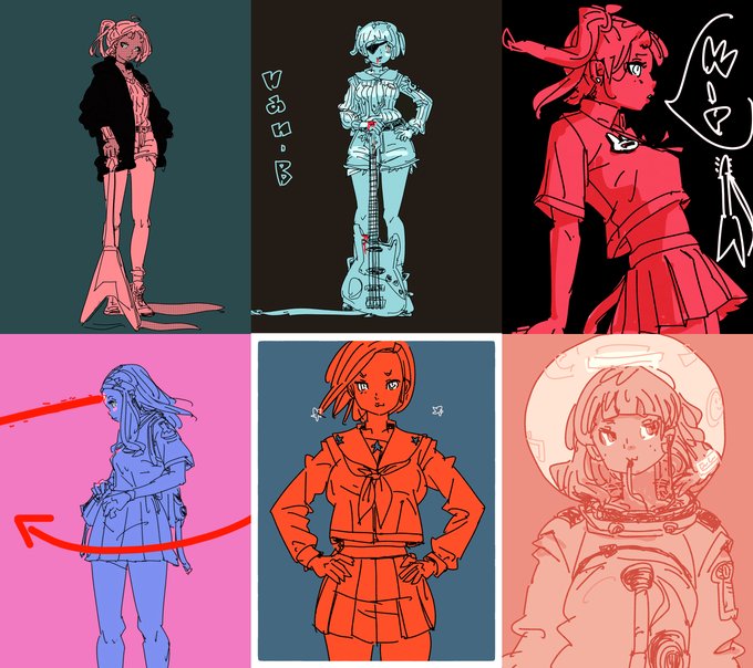 7 42 #今月描いた絵を晒そう ・ストレートマシーン ・偵察型女子高生 ・スカイパイロットよしちゃん 21/08/31 15:37