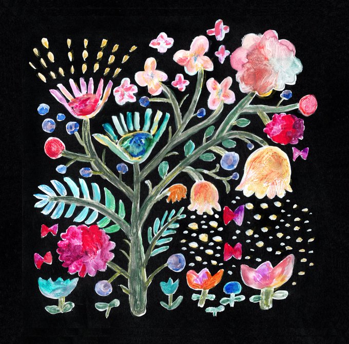 1 30 よろこびの花 木製パネル 原画 Sold out #illustration #古屋知世 #富山市 #furuyatomoyo #挿絵 #イラスト #art #design #富山 #花 #flower #空想の花 22/07/15 10:06
