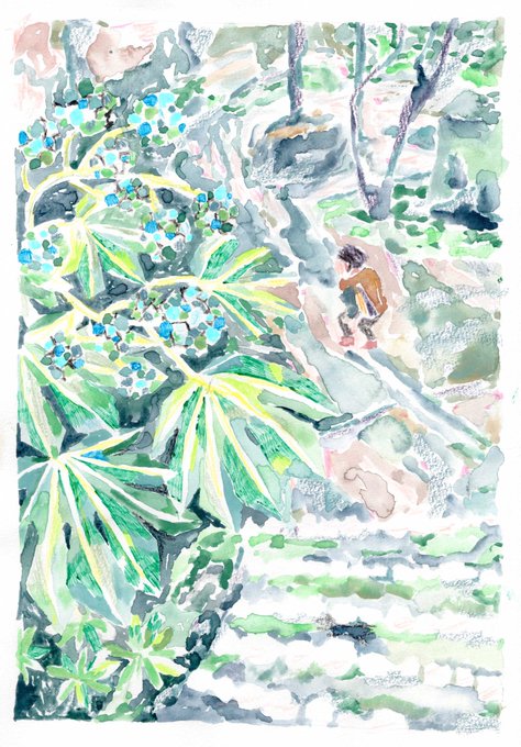 1 26 夏の山 原画 #illustration #古屋知世 #furuyatomoyo #イラスト #art #植物 22/07/26 19:17