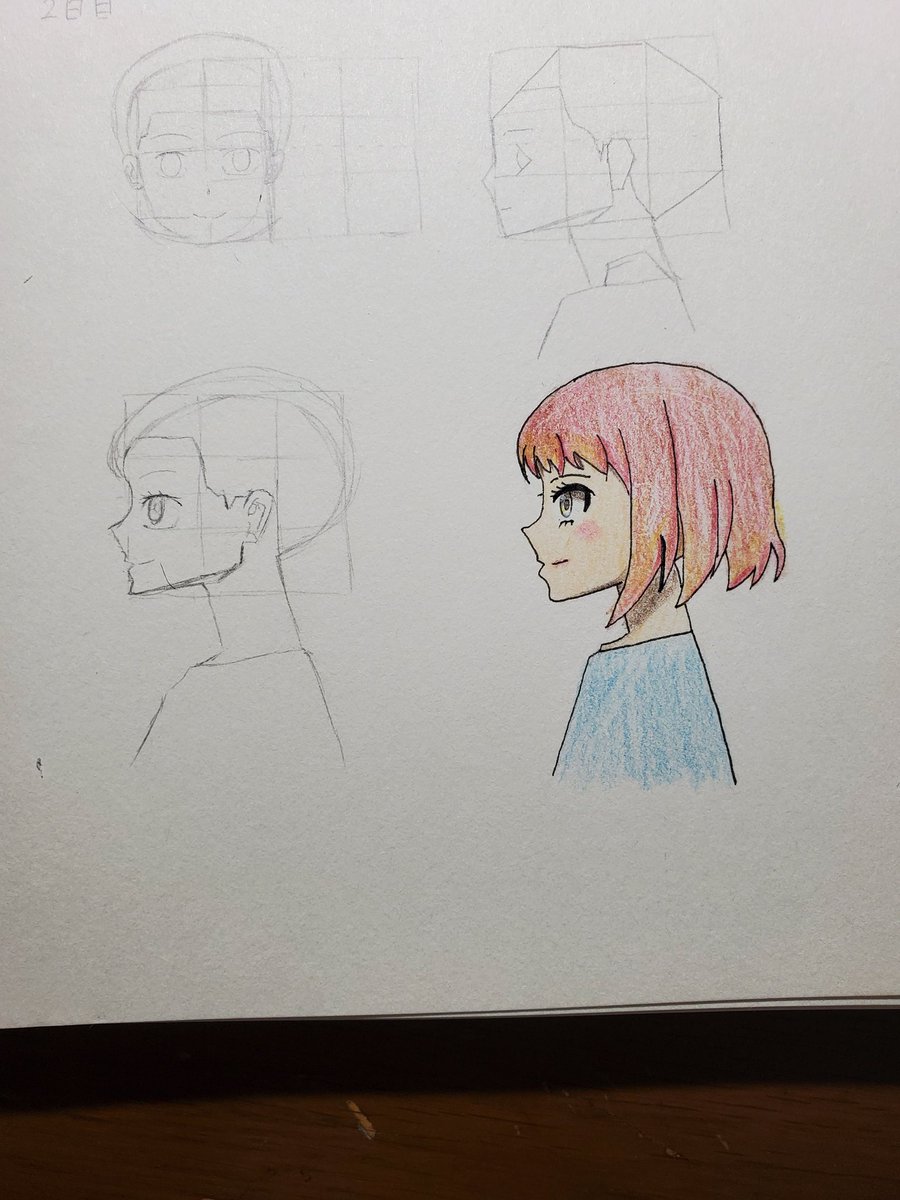 イラスト練習2日目! 横顔のバランスも難しい😱 画像の子はアップルちゃん🍎 #イラスト #人物画