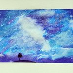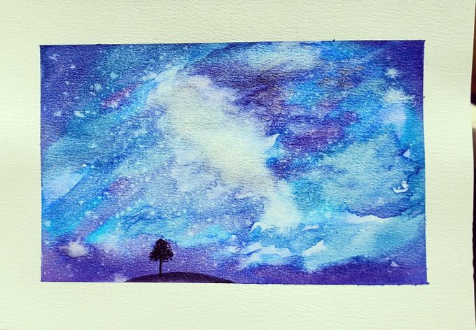 水彩画で星空を書いてみました!😊 #絵描きさんとつながりたい #落書き好きさんと繋がりたい #水彩画