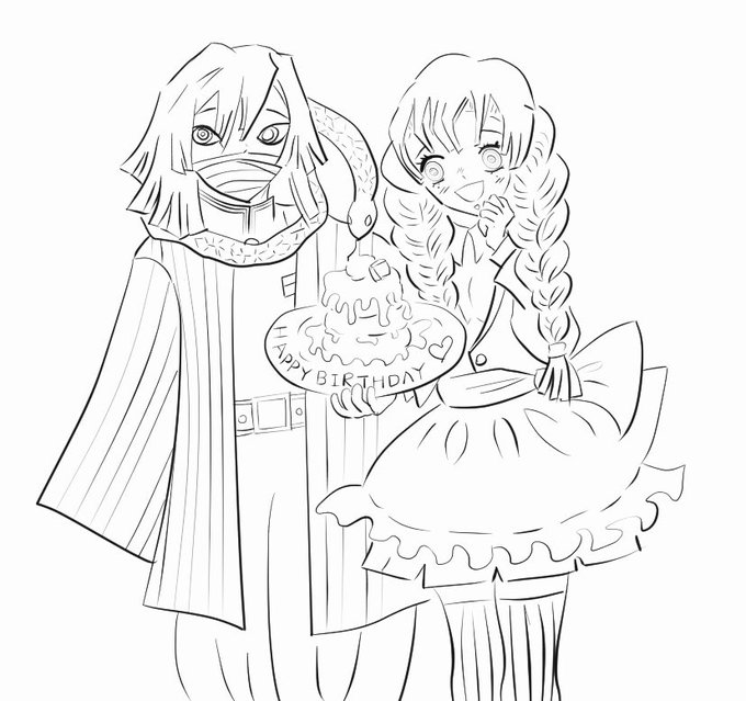 小芭内さん、蜜璃ちゃん、やっと完成💦遅くなりましたが再度お誕生日おめでとうございます❣️蜜璃ちゃんの家特製のパンケーキ🥞がプレゼント🎁蜜璃ちゃんピンク濃いなぁ😓 #伊黒小芭内誕生祭2021 #伊黒小芭内生誕祭2021 #鬼滅の刃イラスト #蜜璃ちゃん #おばみつ