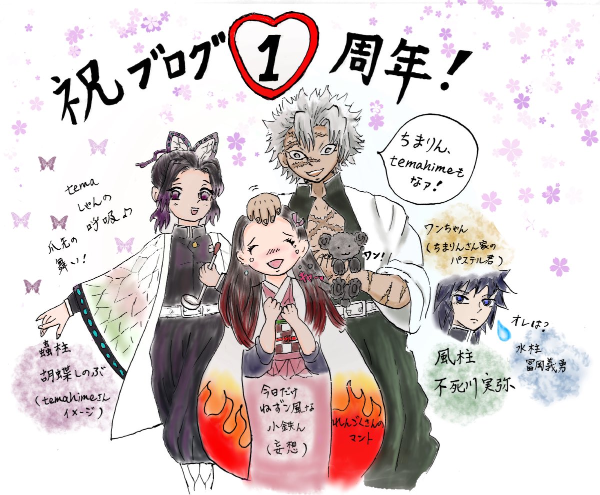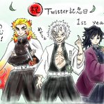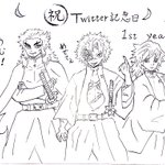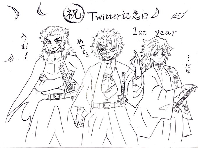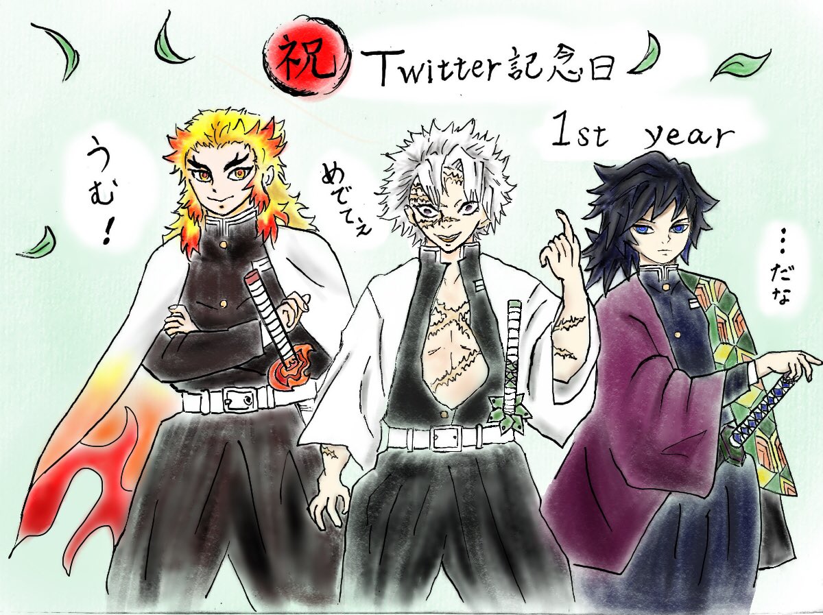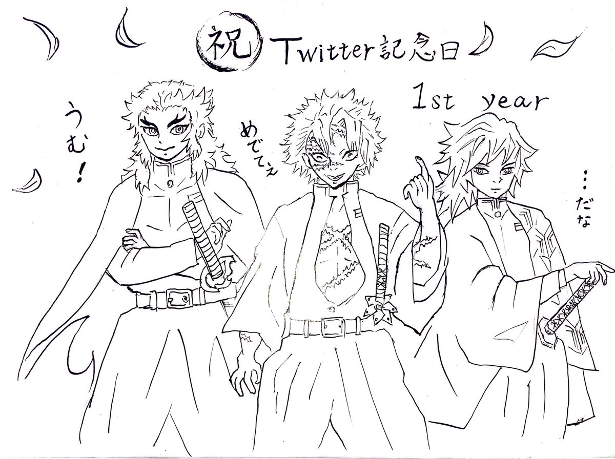 今日でTwitter1年経ったみたい。お知らせきたんで猛スピードで描いてみたけど色塗るの間に合わないぃ(笑)😅 #Twitter1周年 #鬼滅の刃 #煉獄さん #実弥さん #義勇さん #自分へお祝い #鬼滅の刃好きな人と繋がりたい #鬼滅の刃イラスト