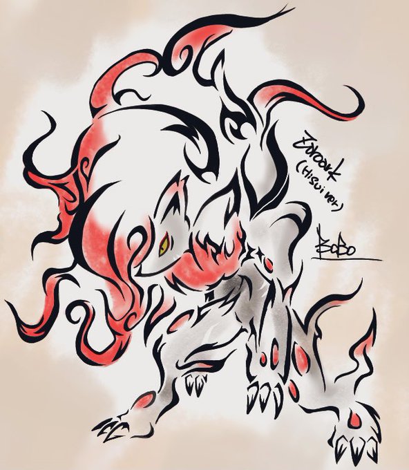 久しぶりに、ポケトラ🙋♂️ ゾロアーク(ヒスイ)描きました。 #ポケモントライバル