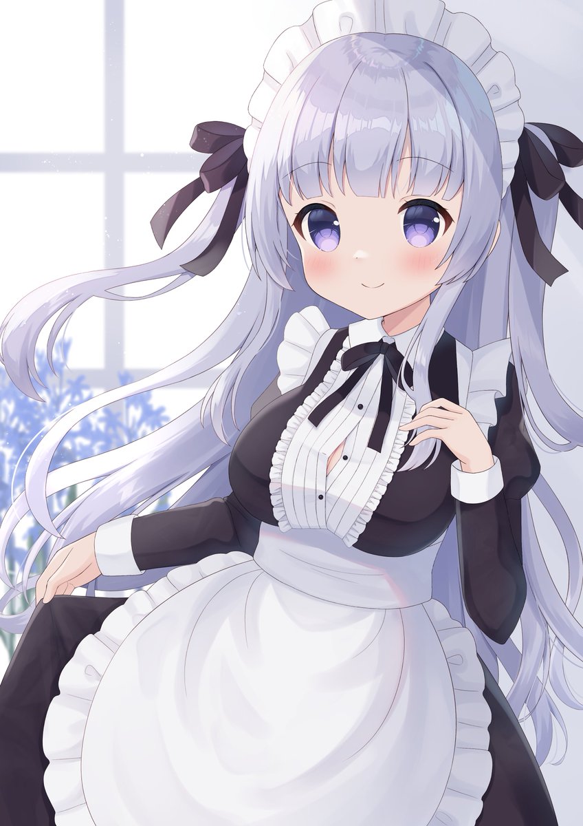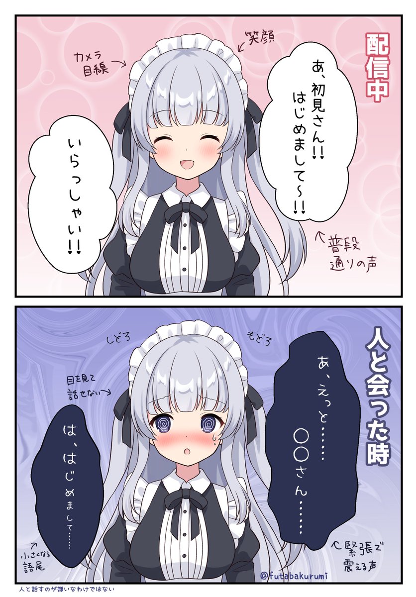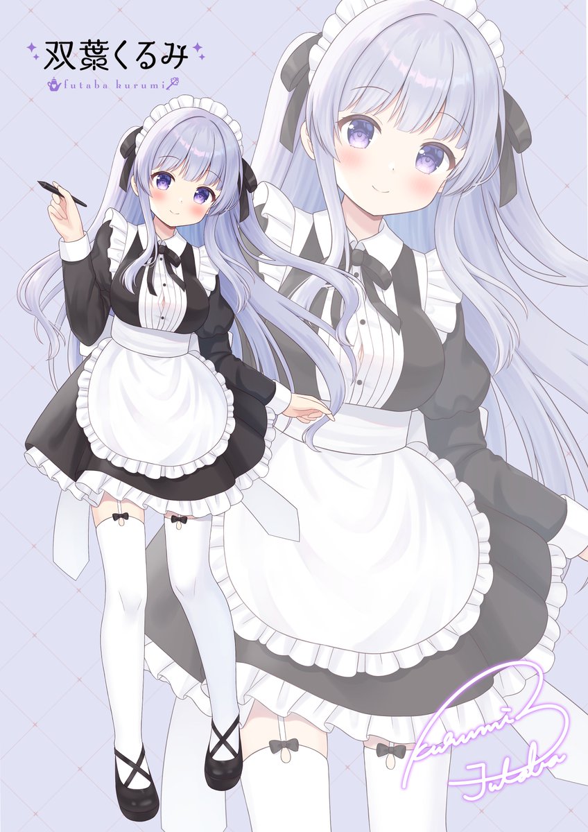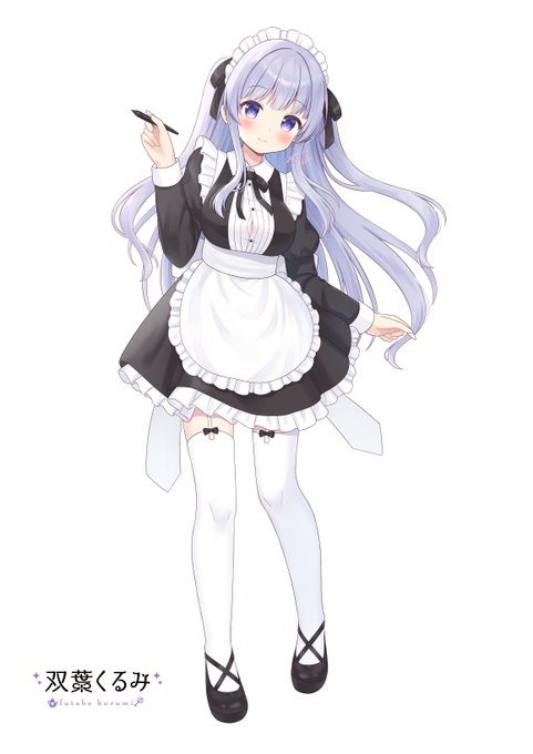 セルフ受肉お絵描きメイド✒️ ふわふわサラサラの銀髪✨ リボンたくさん🎀 ちらっと覗く絶対領域&ガーターベルト フリルが多いことに目を瞑れば作画コスト低め! #Vtuberキャラデザ自慢