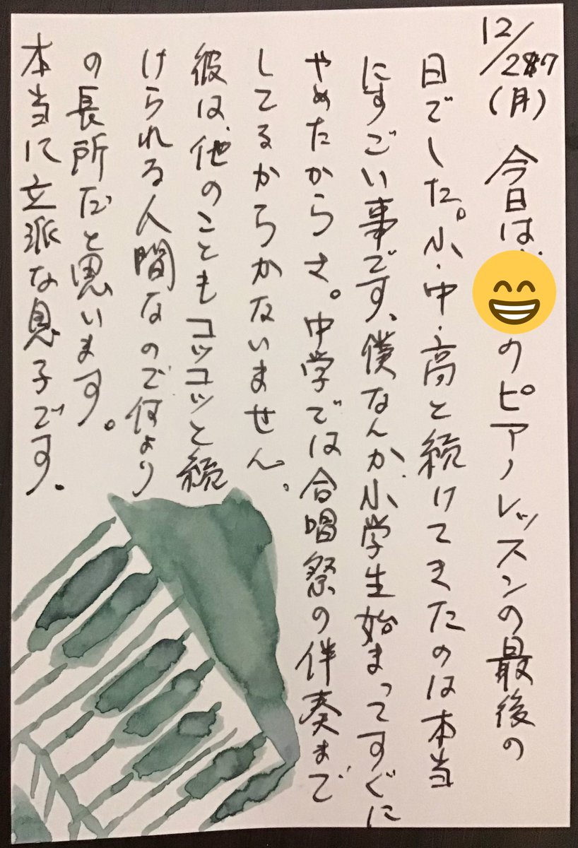 0 8 毎日ハガキを書いて両親に贈る古風なことをしてます.時々忘れますが今日も書きました. #一日一通 立派な孫だよの巻. #水彩画 21/12/27 21:37