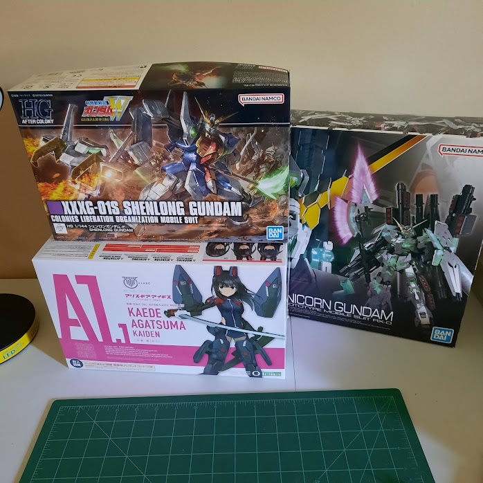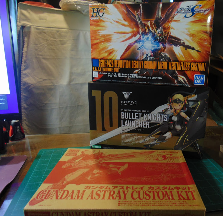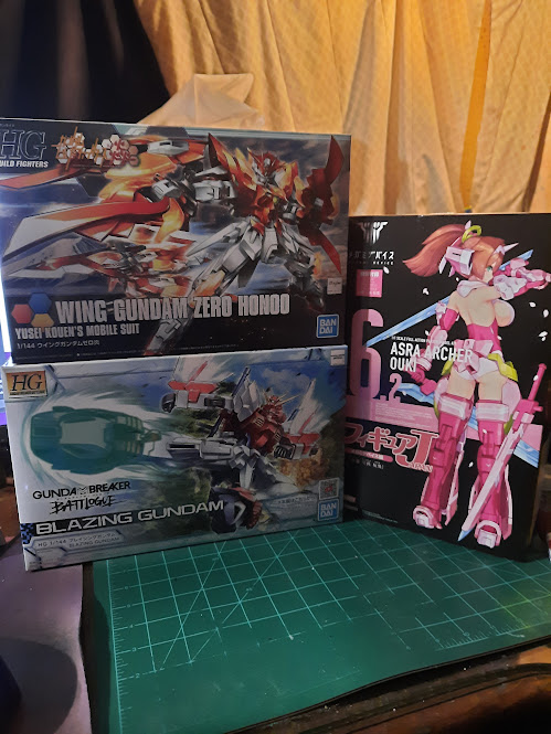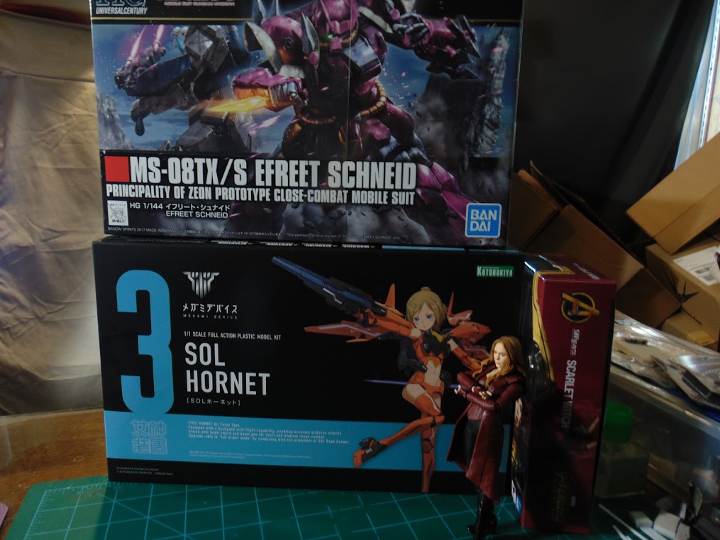 Sol Hornet in, an Efreet, and a present for myself. Sol hornet is a fun one to build. #ガンプラ #メガミデバイス #scarletwitch