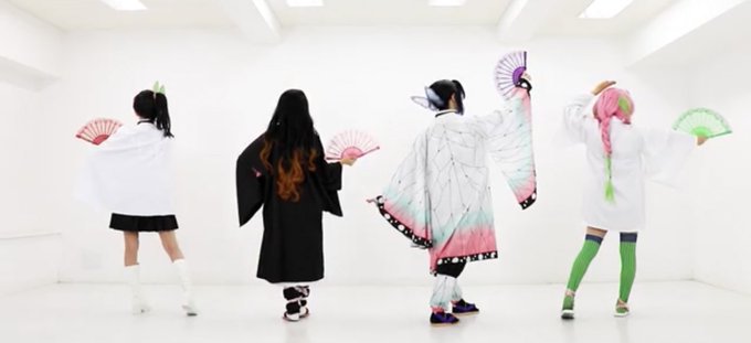 ✨【お知らせ】✨ 本日20時にW.W.Fから新作動画がニコニコ動画にあがります‼️‼️ 是非ご覧下さい~🥰 鬼滅女子4人で踊ってきました💜❤💗💚 鬼滅の刃無限列車編の本予告が公開されましたね✨🥺映画公開が益々楽しみです! #WWFutuka #コスプレ #踊ってみた