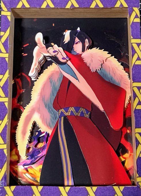 11 13 ギジリ 自分で描いた絵をシャドーボックスにしたやつ 背景黒にしたら自分で描いたのに線画の位置分からなくなってウケる #シャドーボックス 22/10/01 21:42