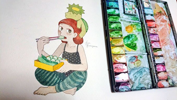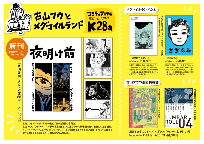 コミティア始まりました!!スペースK28aです。漫画読んでますと言ってくださる方に直接お会いできてもうすでに参加してよかった…となってます。マドちゃんが作ってくれた河童と一緒にお待ちしてます! #COMITIA144