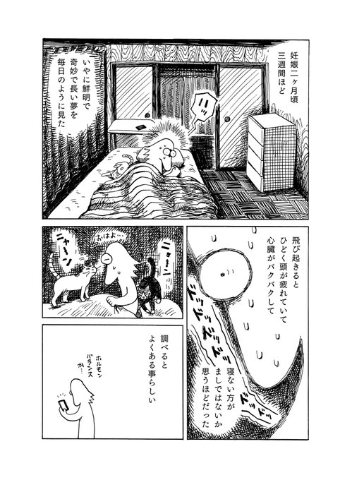妊娠中に見た奇妙な夢の話「プレグナンシー夢十夜」試し読み(2/2) コミティア144スペースK28aで頒布するメグマイルランドさんとの合同誌「夜明け前」に掲載しています! #漫画が読めるハッシュタグ