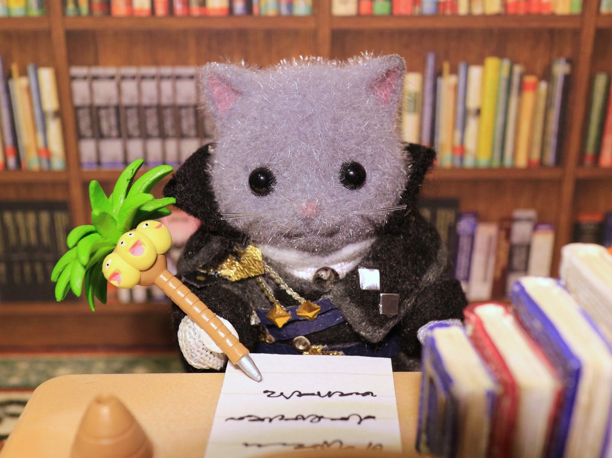 新しいペンで書類を書くヒュ〜ベルトです(特に意味なし)