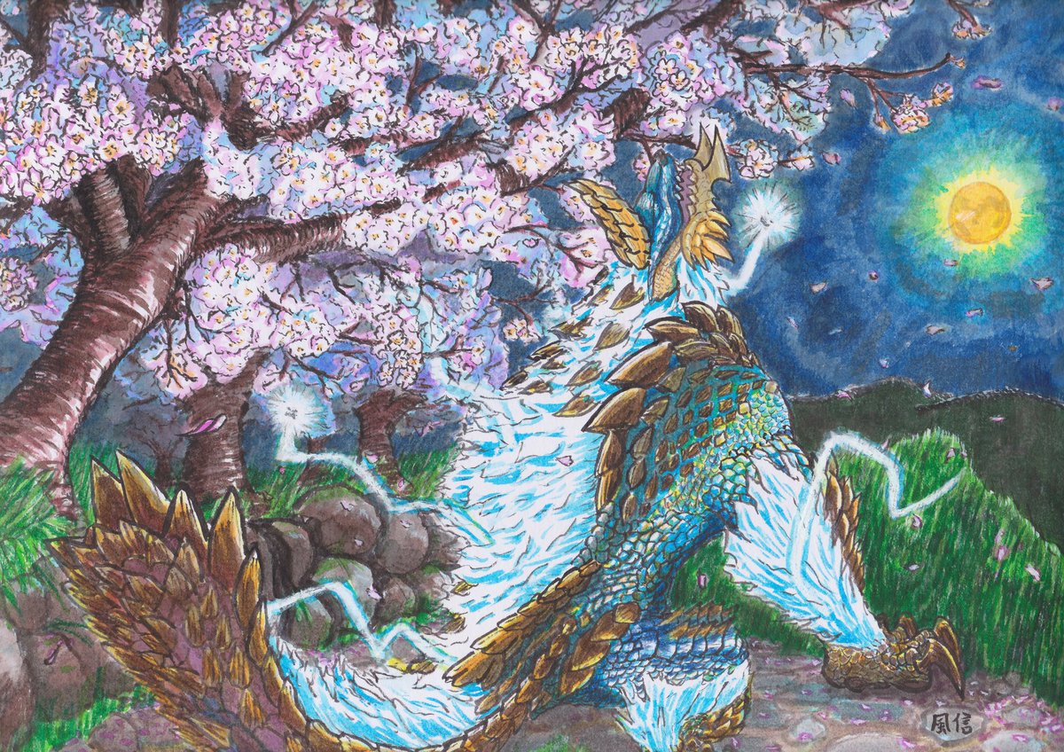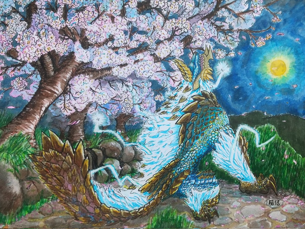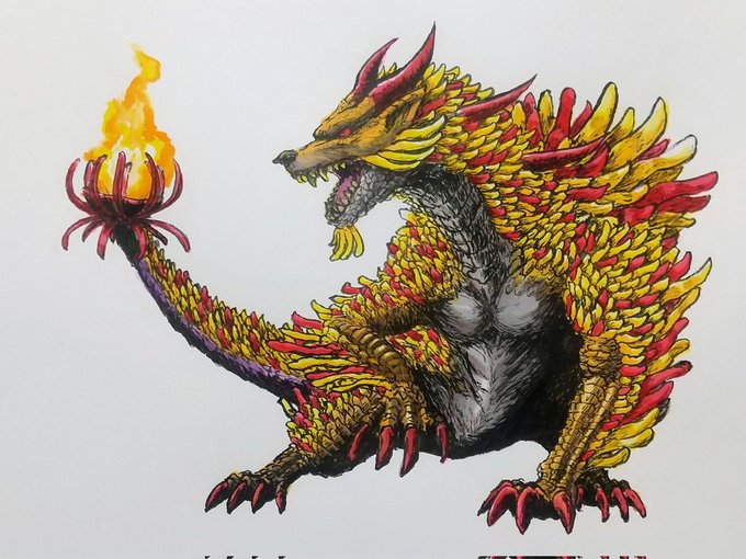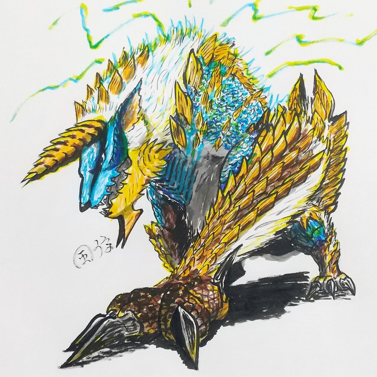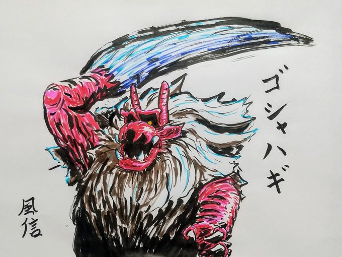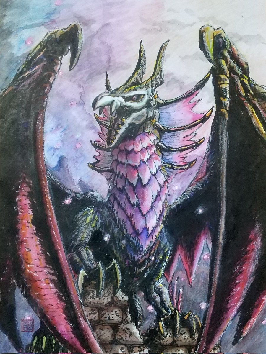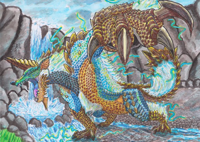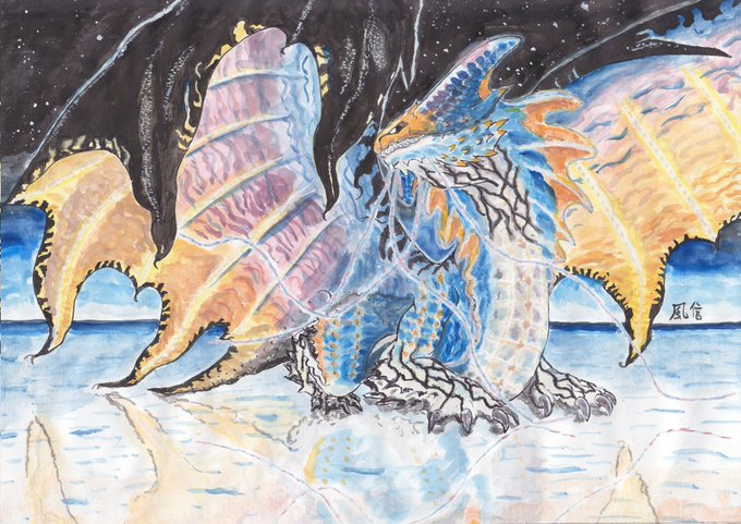 『アルバトリオン』 (墨汁・水彩色鉛筆) 久々に数日掛けて モンハンモンスターを 描きました! (´ω`)落描きばっかでごめんね。 #モンスターハンター #MonsterHunter #アナログイラスト #水彩色鉛筆