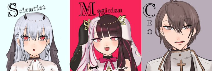 自分のヘッダー用に描いたSMC組⚗️🎩🐤🏢 #はかせレポート #れなの鳥っくあーと #加画美 #SMC組