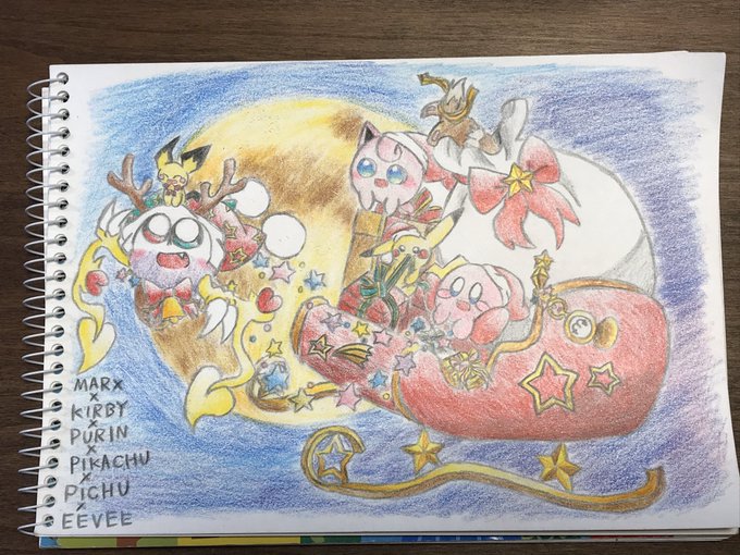2 19 #カービィ #マルク #ピカチュウ #プリン #ピチュー #イーブイ #クリスマス #メリークリスマス #ポケモン #kirby #marx #pikachu #purin #pichu #eevee #色鉛筆 #イラスト #色鉛筆画 #カービィ好きさんと繋がりたい #イラスト好きさんと繋がりたい 19/12/25 21:05