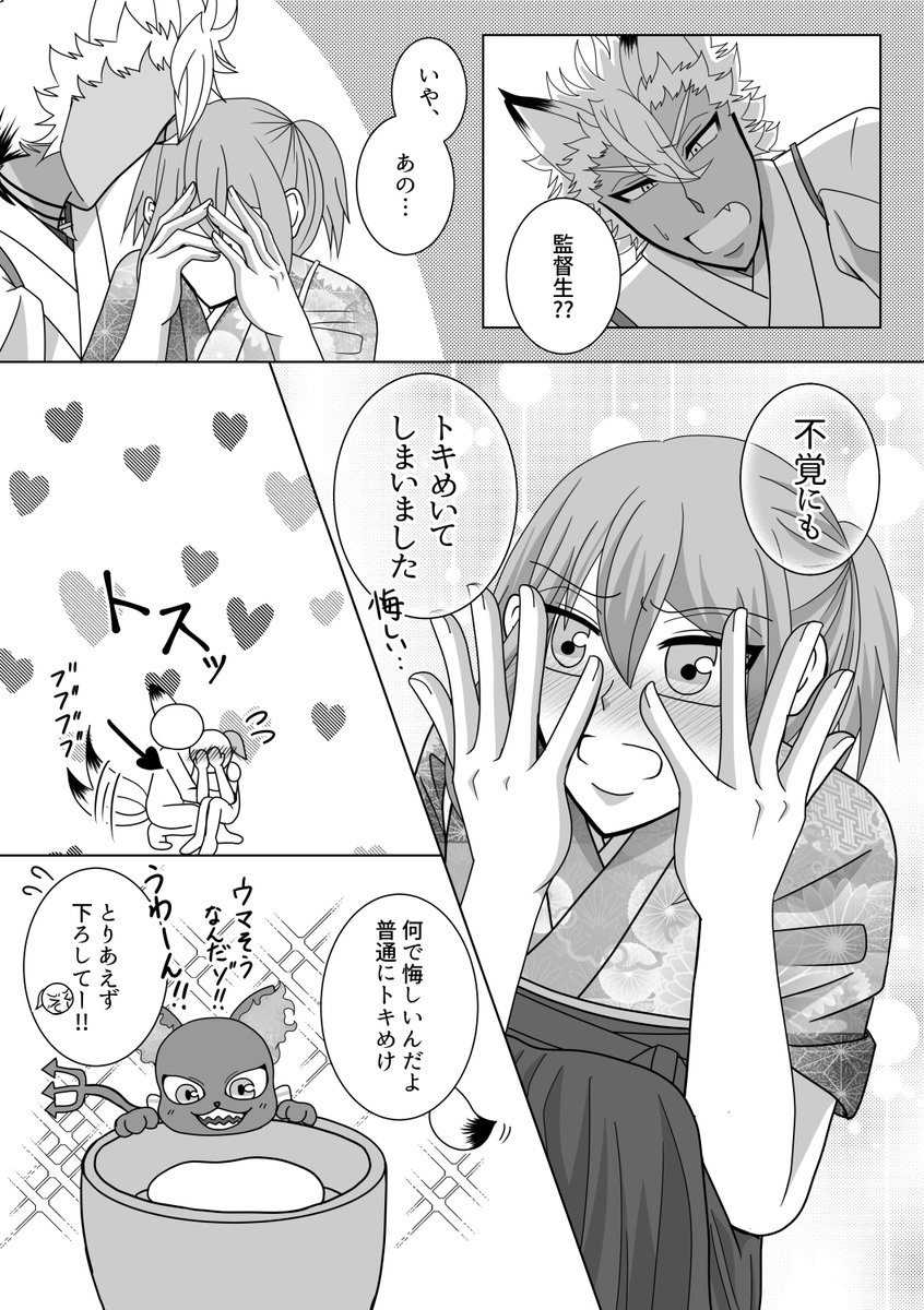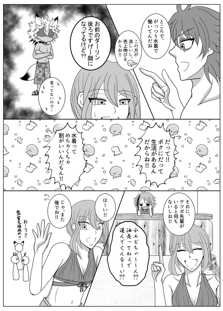 ジャク監♀(顔あり監督生)🐺🌸 以前に参加したジャク監♀企画の漫画の中で入れたかったけど入れれなかった部分を余談として描きました! どうしても一緒にバイトしてる二人が見たかったのと、ホールに出る🐺くんが見たかったんです…絶対にこういうことするでしょ🐺くん… #twstプラス twitter.com/fuwa2jack/st…