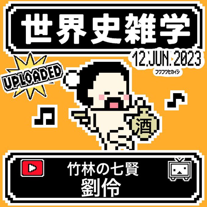 アップできた。またこういうネタになってしまった。次のネタを探す。 youtu.be/GpleaDVZrJ4 nicovideo.jp/watch/sm423449… #ドット絵 #pixelart #竹林の七賢 #劉伶