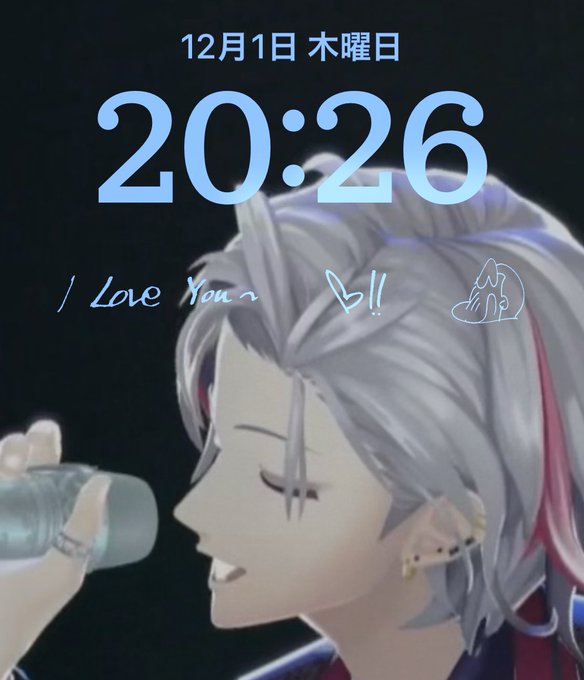 iPhoneユーザーに教えときたい(?)んだけど、ロック画面の時計の下のウィジェットの部分に白文字に加工して背景透過させた推しの手書き文字をウィジェットのアプリ使って画像挿入すると、なんかオシャレになります 時計の色と連動しています(※念の為他界隈の手書き文字です)