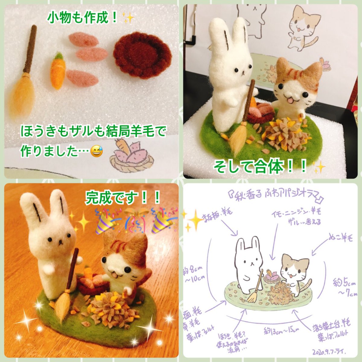 ハンコレ11回目の最終回! 無事完成しました!!✨(≧∇≦) 練習から入ったとはいえ、初めての羊毛フェルトでここまで作れて満足です!!✨(´∇`) 11月デザフェスと12月ハンコレ展示会にてお披露目会します~! #ハンコレ20AW #ハンコレ20AW_14番 #羊毛フェルト
