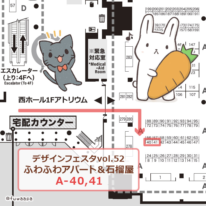 コミティアの設営完了しております!✨🐰 ホール入口入って右手側、そ55bふわふわアパートでお待ちしております~!(´∇`) #COMITIA141 #コミティア twitter.com/fuwaapa/status…