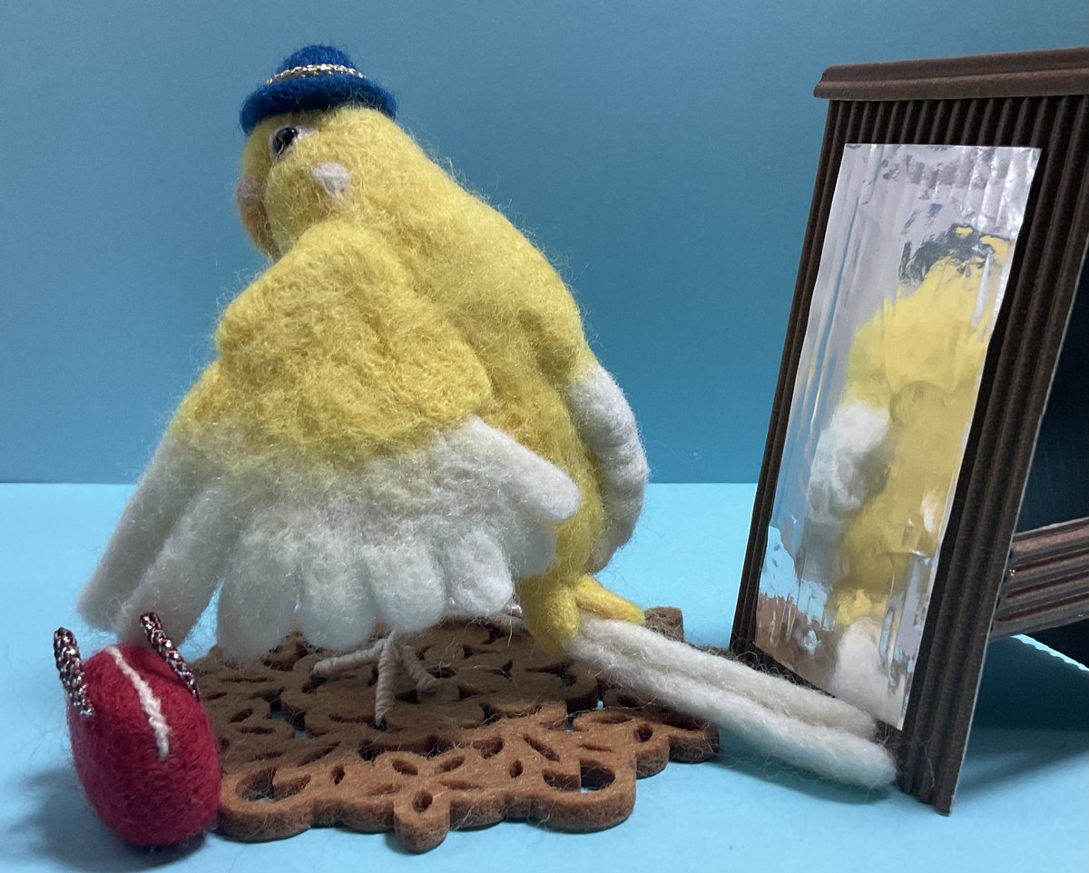 コロリン天使のおちり😚 ポッケ付きのセキセイインコはユメちゃんがモデル🐥 久しぶりの羊毛フェルトです 羊毛なら大型な鳥も掌でコロコロ愛でることが出来るね😊 #羊毛フェルト #ハンドメイド #ハンドメイド好きさんと繋がりたい