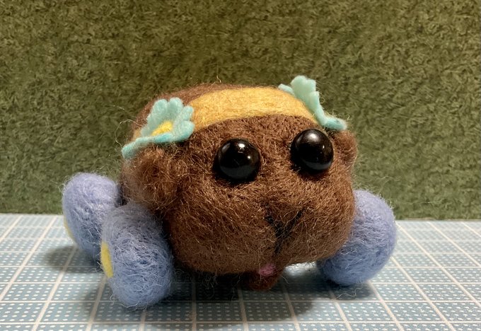 PUI PUI モルカー チョコちゃんの色(赤茶色)が無かったので茶色を使用 タイヤも同じ色が無かった アップで見るとクレヨンしんちゃん似のアザラシ感🤣 もう少し体を大きくしても良かったかな? #羊毛フェルト #モルカー #モルカーファンアート
