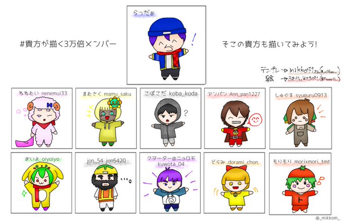 #貴方が描く3万倍メンバー mikko41さんのテンプレをお借りして描きました 下描き含め3時間弱かな? #い・らくすと #ねねむいのもふもふ #まむさく咲いた #アンパン屋さん #しゅぐるのランチボックス #おいよあーと #くをーたーのうずまき #どらみのリボン #もりもりトマト #jon_54 #koba_koda