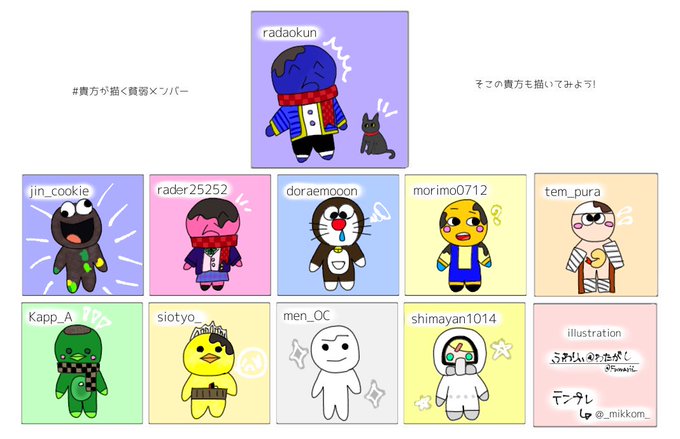 #貴方が描く貧弱メンバー またmikko41さんのテンプレをお借りして描きました 今回は2時間弱ぐらい #い・らくすと #焼きたてじんくっきー #radar25252 #どら絵もん #もりのん愛好会 #てんぷらの絵 #きゅうり食ってる場合じゃねえ #しおちょ描いた #men_OC #shimayan1014
