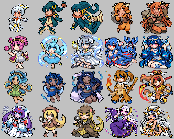 Hii im fuwu, i love pokemon, gijinkas, and pixelart. Here are some recent sprites i worked on :) #moemon #pokemon #pkg #pixelart #PortofolioDay