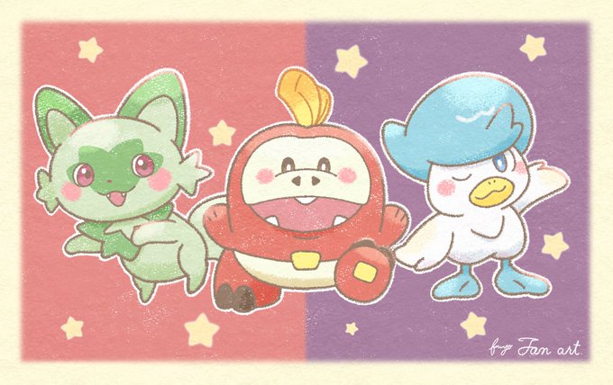 改めてポケモンスカーレット・バイオレット発売おめでとうございます!👏✨ 皆さんはどの子と一緒に旅を始めましたか?🌿🔥💧 #ポケモンSV #pokemonfanart