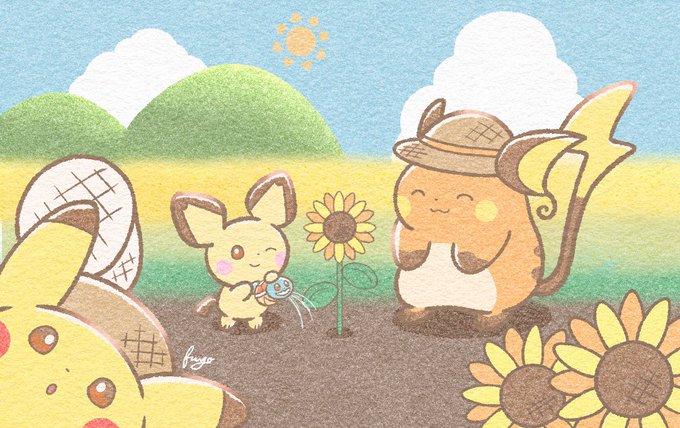 #今年も残りわずかなので今年一番伸びた絵を貼る なつやすみを満喫するピカちゃんず👒☀⚡️