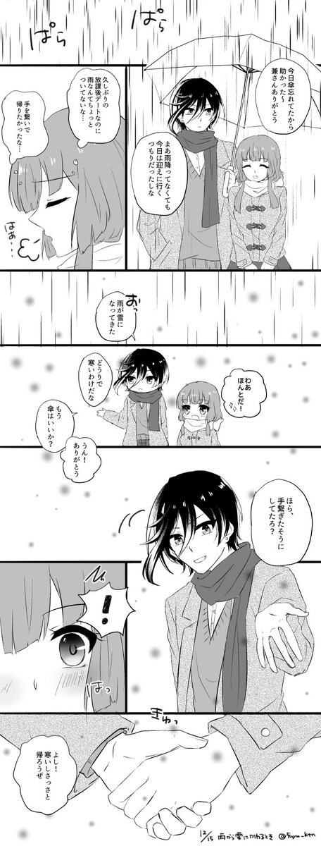 2 15 @tkhime_TL 現パロ兼さにで雨から雪に変わるとき #土方組と女審神者版創作60分 18/12/15 23:27