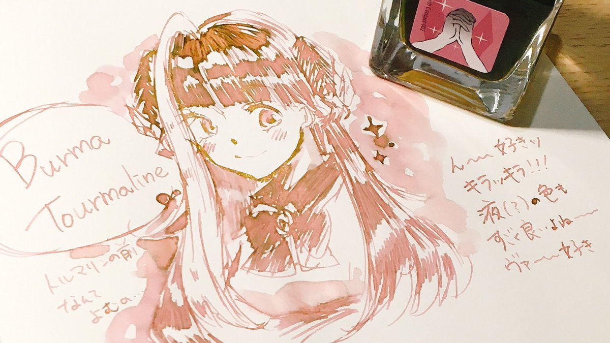 とのりむさんのBurma Tourmalineで落書き✒ やっぱり写真だと色味変わりますわね〜〜〜ッッッッッ ほんとはよりピンクみが強くてもっともっとかわいいんだ… #おはようVtuber