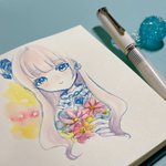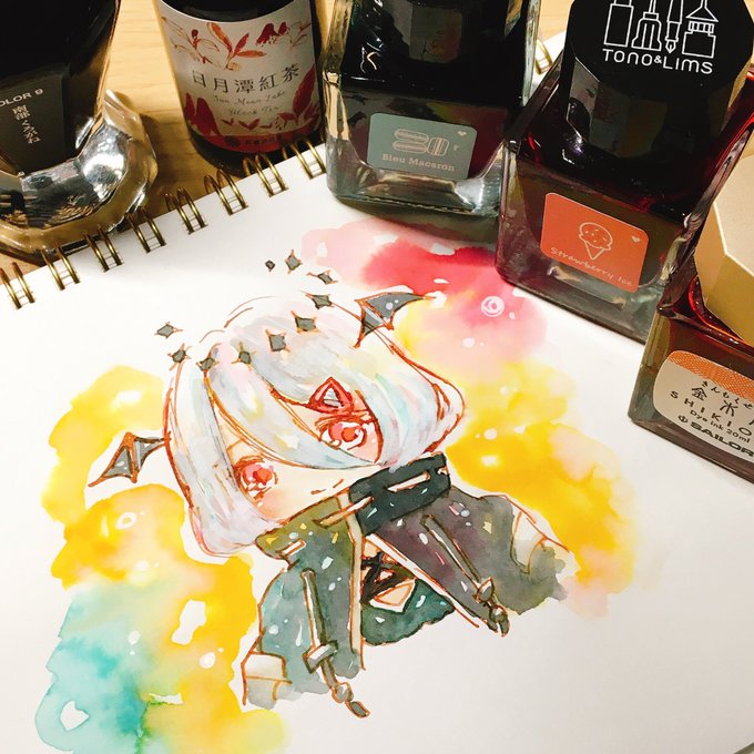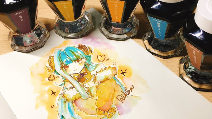 いわてのいいイロ第3弾を全部使って描いてみたのだ✒ 使ったインクのお名前 南部 紫 岩泉 リトルサンシャイン 浄法寺 短角ブラウン 久慈 アンバーイエロー 龍泉洞 ドラゴンブルー #おはようVtuber