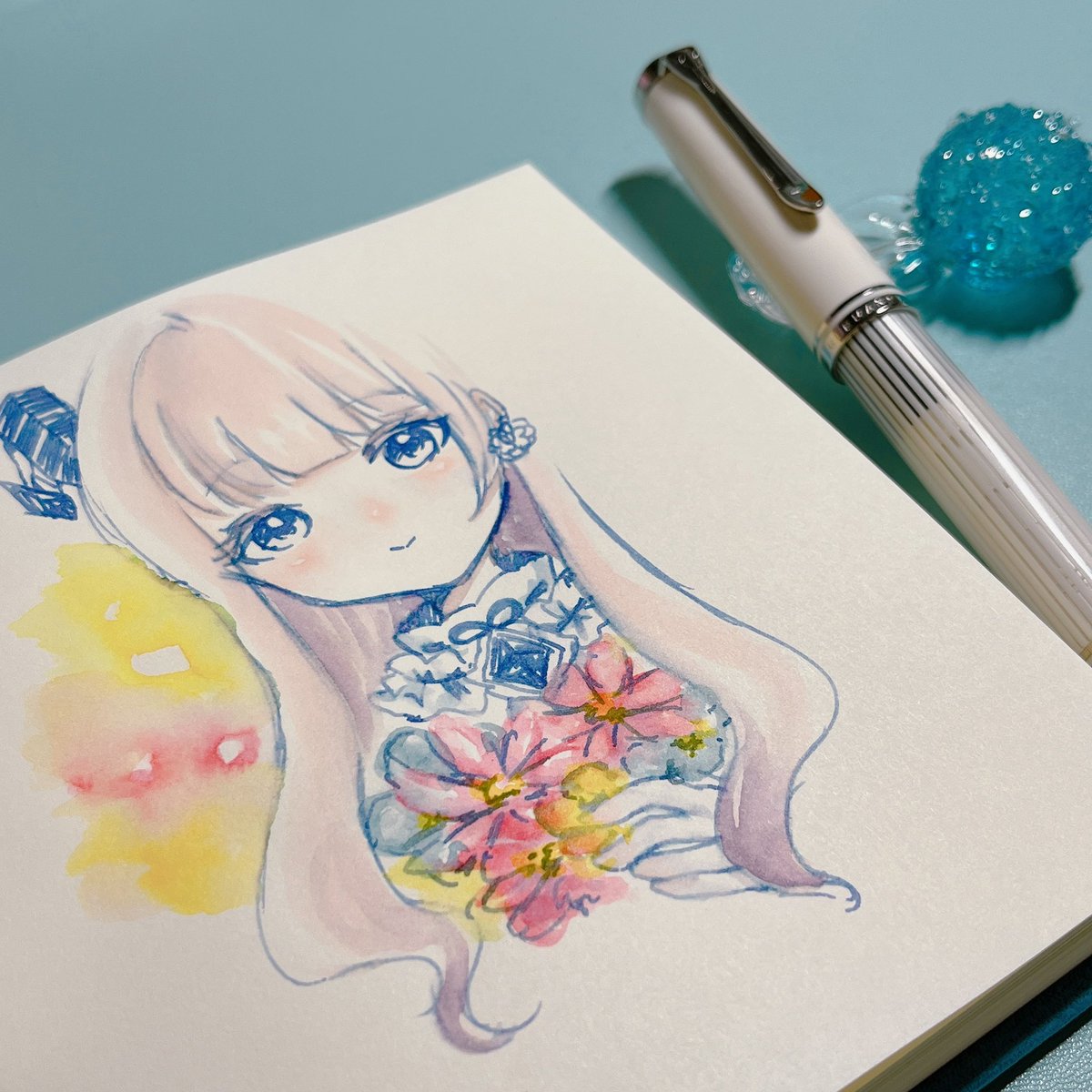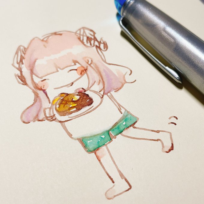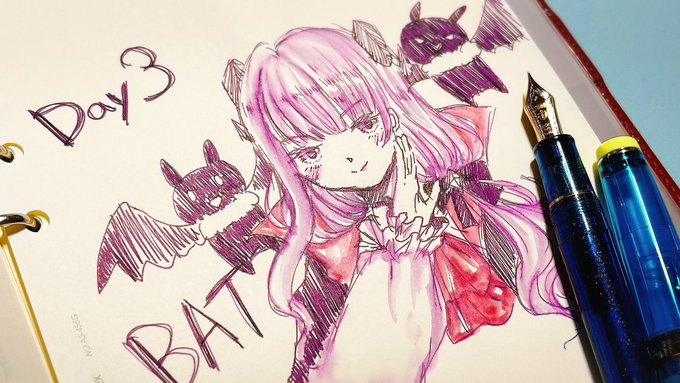 #inktober2022 #おはようVtuber 使ったインク✒ いわてのいいイロ_南部紫 Tono&Lims_Strawberry Ice これ描いてる時にティッシュ取ろうとしてお茶2L弱ひっくり返し、 今チベスナフェイスですおはようございます