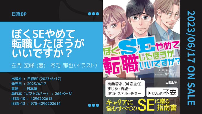 【お仕事情報】 『ぼくSEやめて転職したほうがいいですか?』日経BP 著:左門 至峰さま こちらのカバーイラストと挿絵を描かせていただきました!BLじゃないのですよ!女子も描いたよ! 悩めるSEさん向けのビジネス書ですw amazon.co.jp/dp/4296202618… twitter.com/i/web/status/1…