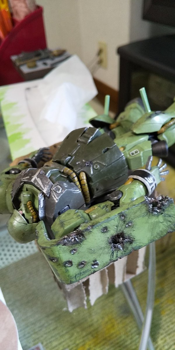 2 3 ダメージ着色❗️ひざの突起は固定用のアンカーです😙 #ガンプラ #ギラズール #ジオラマ 20/05/06 13:35