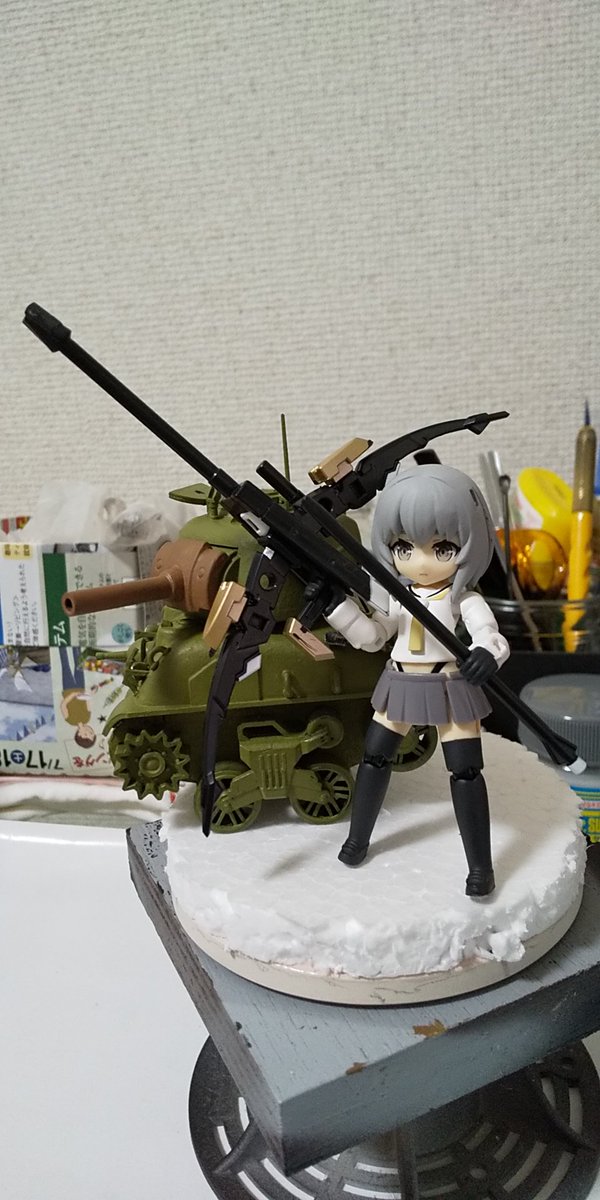 4 23 戦車対セーラー戦士 完成しました✨ 異形の生物に乗っ取られた暴走戦車をビッグボーガンで退治したセーラー戦士❗️ です😙✌️ #映像研には手を出すな #デスクトップアーミー #戦車 21/11/17 17:36