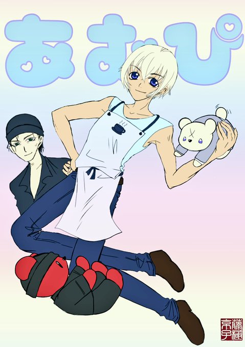 1 6 #ミニキャラと等身大のギャップを晒す 前に載せたやつね。 KID様もスコチも初描きだったやつ。 19/04/24 23:29