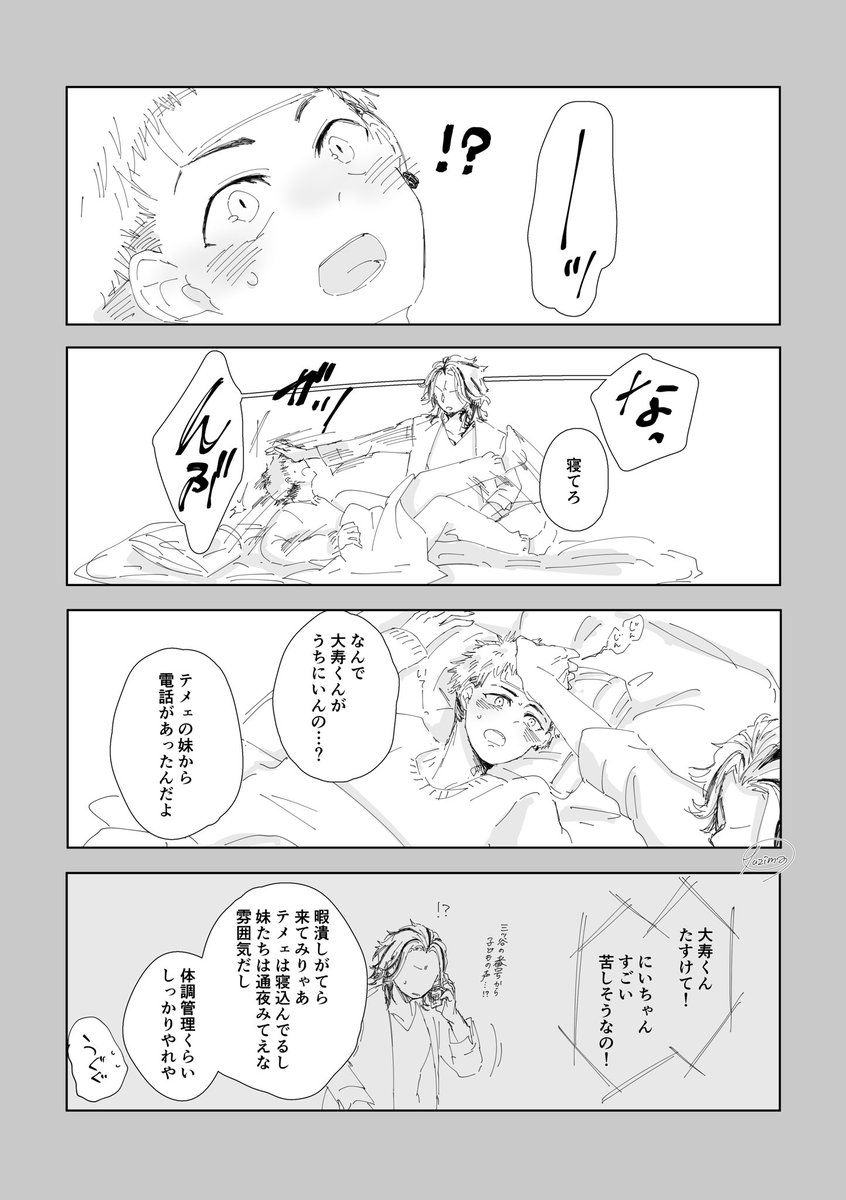 トト□見た妹sとたいみつらくがき たじゅくん困ってるから離してやろうと「にいちゃんも出来るよ」って言ったら「にいちゃんは大きくないから違う」って言われて泣く