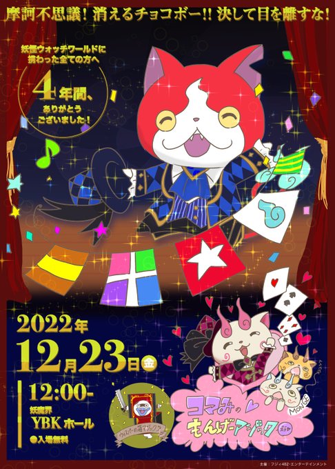 ゲームは明日で終わってしまいますが、楽しいショーはこれからも続いていくと信じています。いつかまたどこかでお会いできたら嬉しいです。本当にありがとうございました。 #妖怪ウォッチワールド #妖怪ウォッチメモリーズ