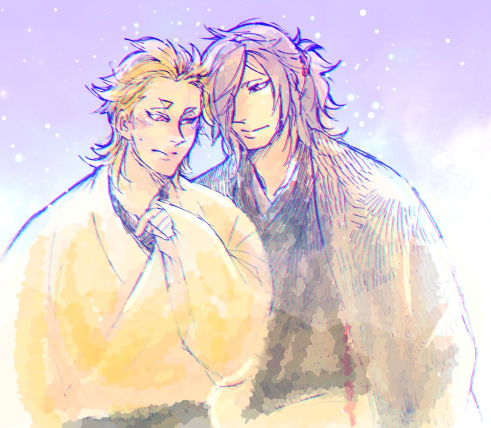 三池落書き 七夕の明け方に見た夢の記憶 うろ覚えですが、ソちゃんが(あれこれ、兄弟との距離感…なんか…ひょっとして………近くねぇ?🤔)となってて、これまで大事に育ててきた顕現兄弟、そろそろ演練にも出陣にも慣れ、ようやくおかしいことに気づいたようですね(?) 春が来るかもしれない 夏だけど